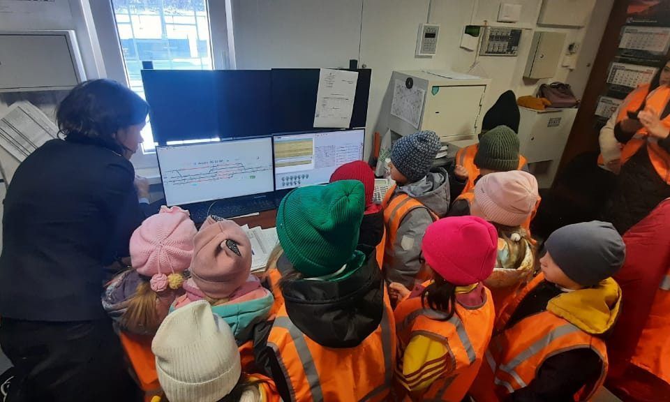 Неподдельный интерес вызвала и работа дежурного по станции — стрелочный перевод и движение поезда на компьютере, за которым дети наблюдали, затаив дыхание.