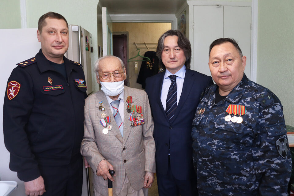 Ветерану Великой Отечественной войны Семену Колтовскому юбилейную медаль «80 лет Победы в Великой Отечественной войне 1941—1945 гг.» вручили первый заместитель председателя правительства Якутии Джулустан Борисов, офицеры и ветераны регионального Управления Росгвардии.