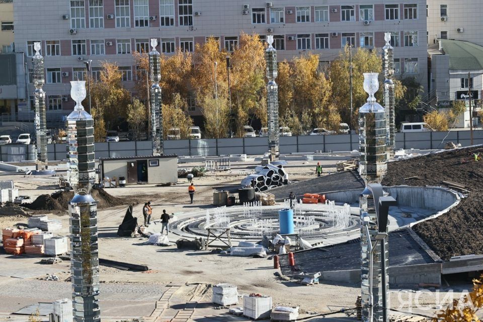 Ранее тестово включали подсветку на тринадцатиметровых металлических колоннах в виде сэргэ. Она будет меняться в будние и праздничные дни. В частности, сэргэ могут загораться цветами флага Якутии.