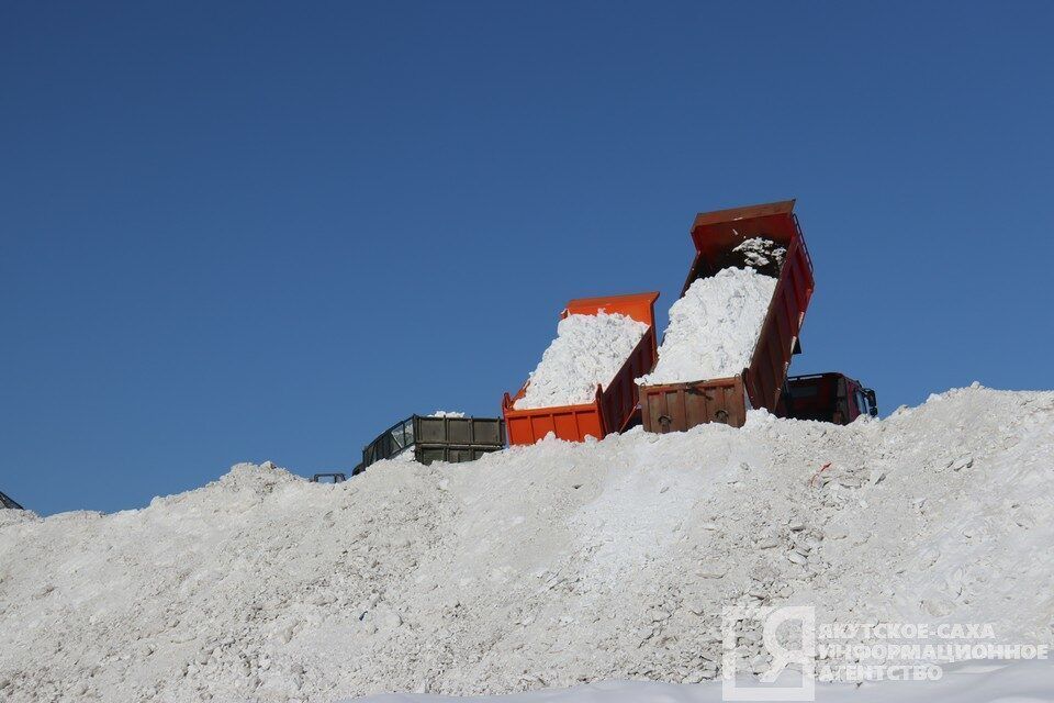 По данным мэрии, площадь городского снежного полигона на улице 50 лет Советской Армии составляет 6,5 га, что соизмеримо с десятью футбольными полями стадиона «Туймаада». Высота трамбованного снега – от 10 до 15 м.