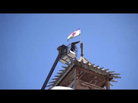 Евгений Григорьев с утра провел традиционную планерку и водрузил флаг города на башне острога.