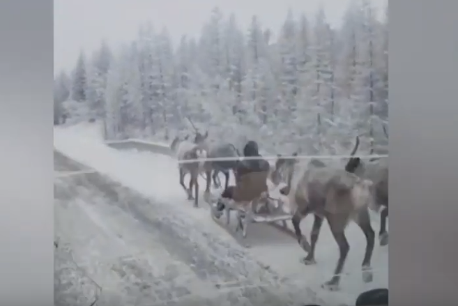 ВИДЕОФАКТ. В Якутии все виды транспорта хороши — автомобиль и олени. Дорога в Оймякон