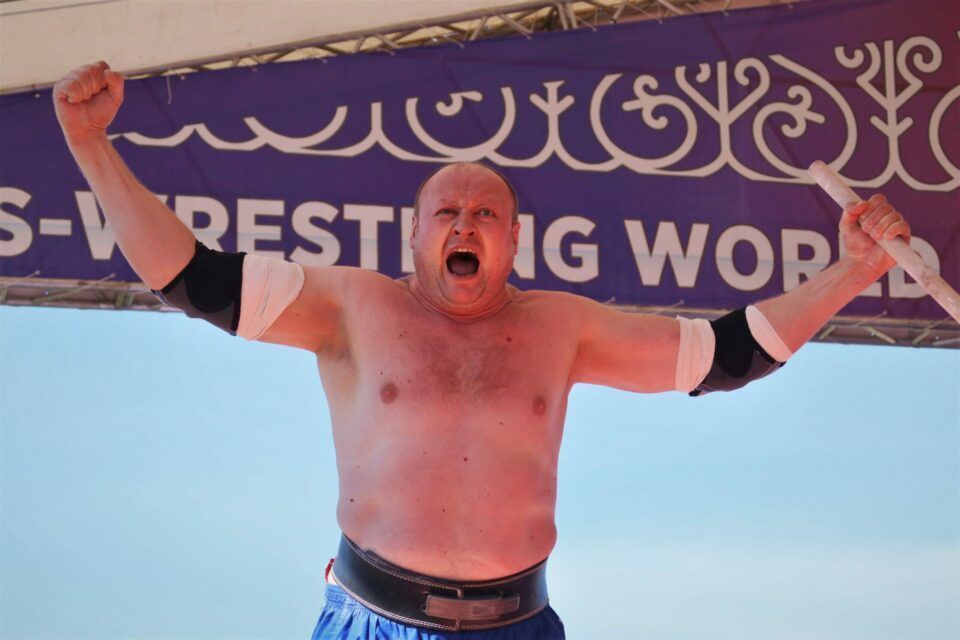 Предварительная борьба абсолютного чемпионата мира состоялась в спорткомплексе «Триумф» 24 июня. А финальные схватки организовали в рамках Ысыаха Туймаады. Среди мужчин в финале встретились Виктор Колибабчук и молодой якутянин Евгений Попов. Соревнования начались напряжённо — в первой же битве оба супер-тяжеловеса сломали палку. Сразу же мас-рестлеры продолжили борьбу, смоленец казалось устал, но все же вырвал палку у якутского спортсмена и повторил это же в напряжённой третьей схватке, победив со счётом 2:0.