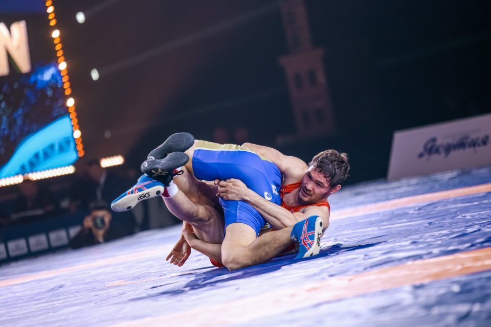 Виктор активно начал борьбу и заработал первый балл, сразу же он совершил успешный проход в ноги и оторвался на три очка.