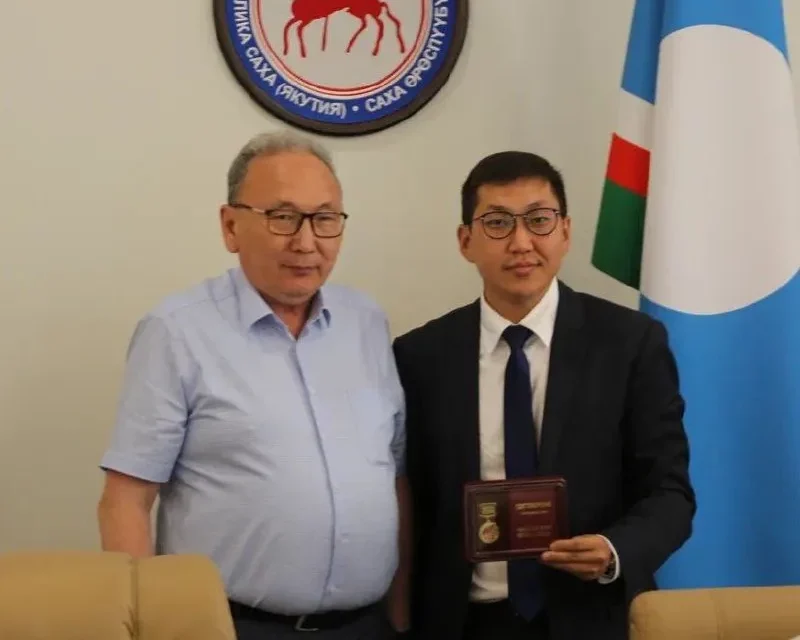 Постоянный представитель Якутии при президенте Российской Федерации — первый заместитель председателя правительства республики Андрей Федотов вручил врачу-кардиологу Виталию Андрееву нагрудный знак «НАРОДНЫЙ ФРОНТ. ВСЕ ДЛЯ ПОБЕДЫ!».