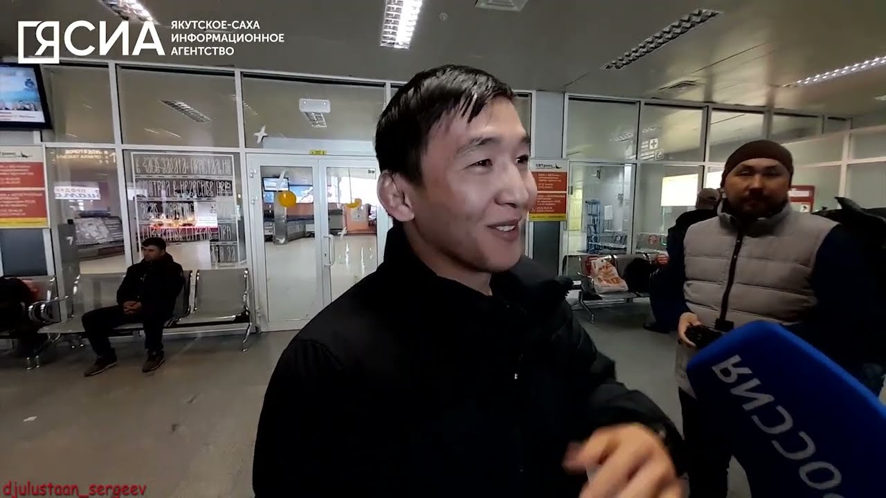В аэропорту якутского борца встретили с флагами заместитель министра спорта Якутии Александр Бугаев, директор центра спортивной подготовки Михаил Пахомов, главный тренер сборной Якутии Александр Оконешников, земляки из Амгинского улуса, семья борца.