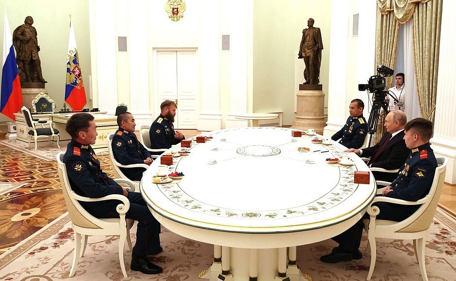 Президент РФ Владимир Путин побеседовал в Кремле с экипажем танка Т-80 , который разгромил колонну бронетехники Вооруженных сил Украины на запорожском направлении. Двое из членов экипажа — якутяне: механик-водитель Филипп Евсеев и наводчик-оператор Алексей Неустроев.