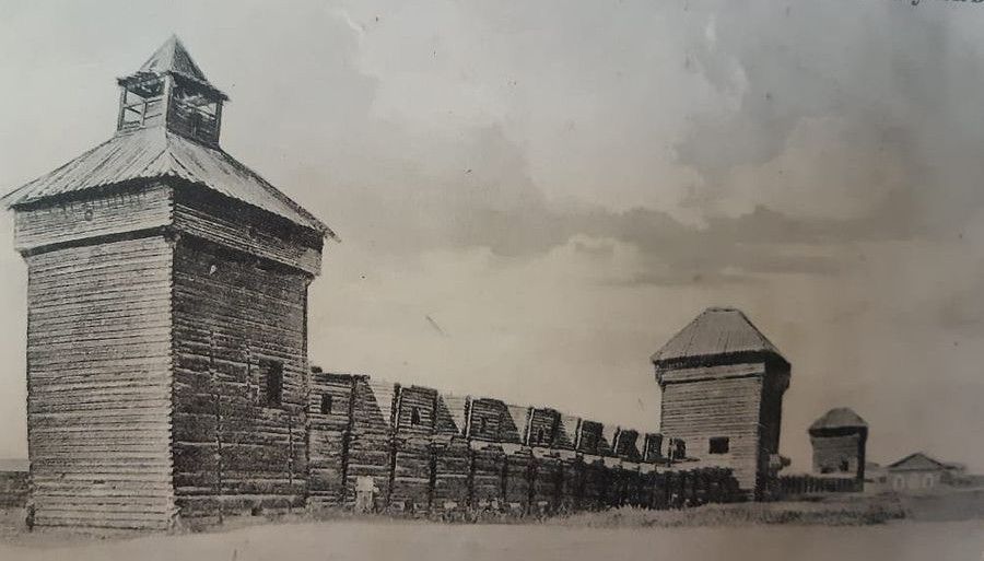 Старинная открытка может многое рассказать о 387-летней истории города Якутска. На ней изображен фрагмент деревянной крепостной стены в Якутске с башнями середины XVII века. Крепость построена в 1642-1643 годах и в первое время служила защитой от неприятельских нападений. Эти стены сохранялись до начала ХХ века. Надвратная башня стояла в том месте, где сегодня располагается площадь Дружбы народов. Она была реставрирована в 1981 году, стояла до 2002 года и помещена на прежний герб города Якутска.