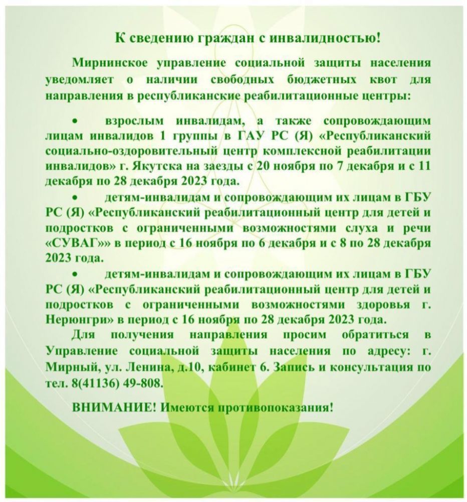 Вниманию инвалидов, в том числе детей