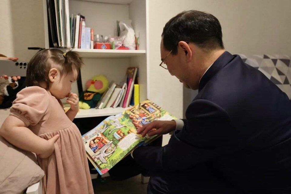 «В момент нашей первой встречи Саина была совсем малышкой, а сейчас это уже подросшая, озорная и любознательная девочка. Она с большим удовольствием показала мне свои книжки, прекрасно знает персонажей и даже мило озвучивает их. Эта малышка буквально завоевала моё сердце», – рассказал по итогу встречи Айсен Николаев.