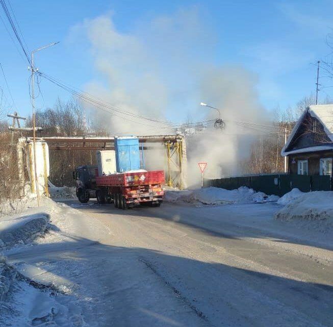 В результате ДТП подача тепловой энергии ограничена в двухквартирных домах по улицам Лабуня, Быкова и Билибина. Трубопровод холодного водоснабжения не пострадал. Сразу после происшествия информация была передана в ГИБДД. Температура наружного воздуха составляет -20°C.