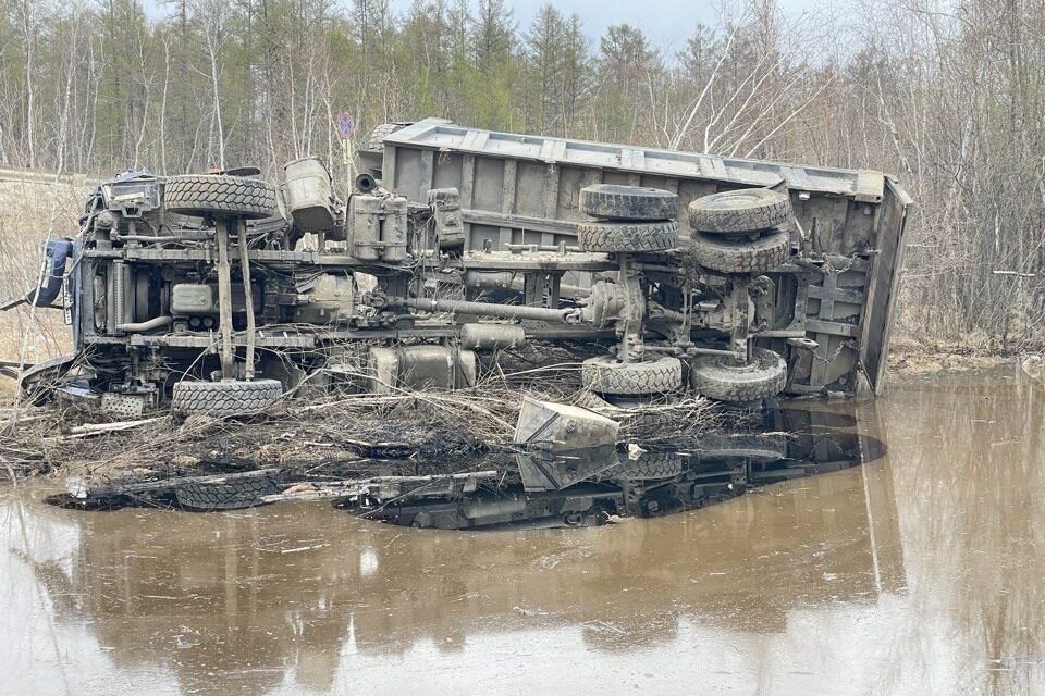 ДТП произошло примерно в 12:00 в воскресенье. Большегруз ехал из села Капитоновка в село Намцы. Водитель на скорости не справился с управлением автомобиля.