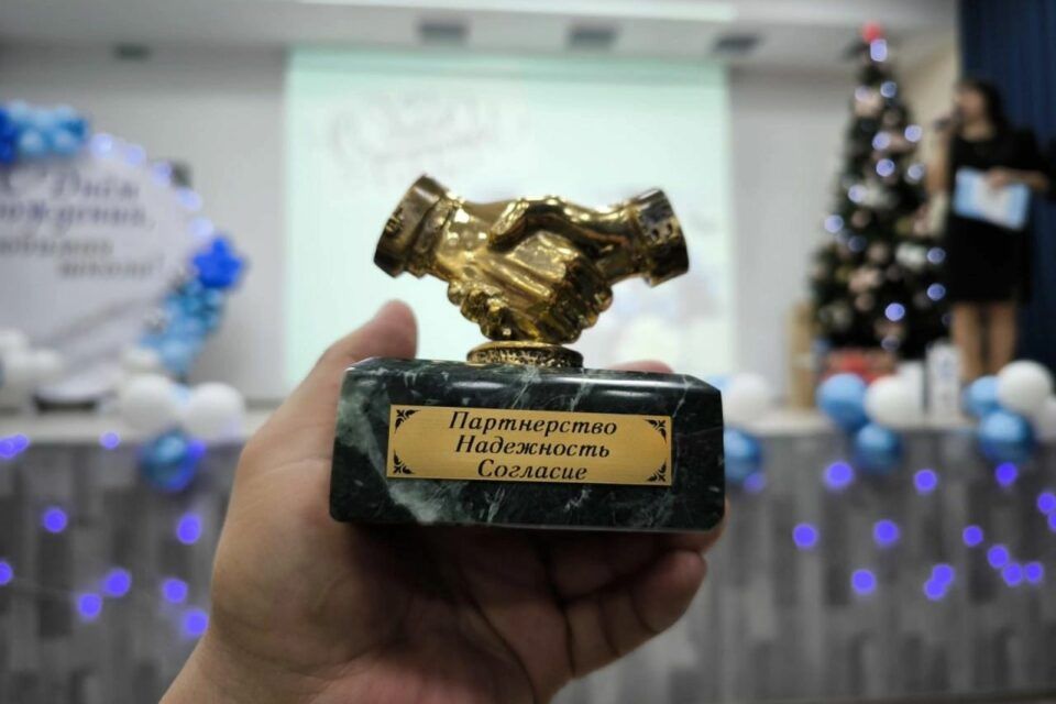 На мероприятии руководителю рабочей группы по восстановлению школы Михаилу Кириллину вручили благодарственное письмо и статуэтку как символ партнерства.