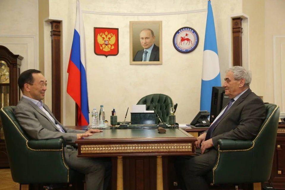 Глава Якутии Айсен Николаев в Москве провёл рабочую встречу с государственным советником Республики Саха (Якутия) Вячеславом Штыровым. В ходе встречи обсуждались развитие креативной индустрии, развитие алмазной промышленности, вопросы привлечения новых инвестиций.