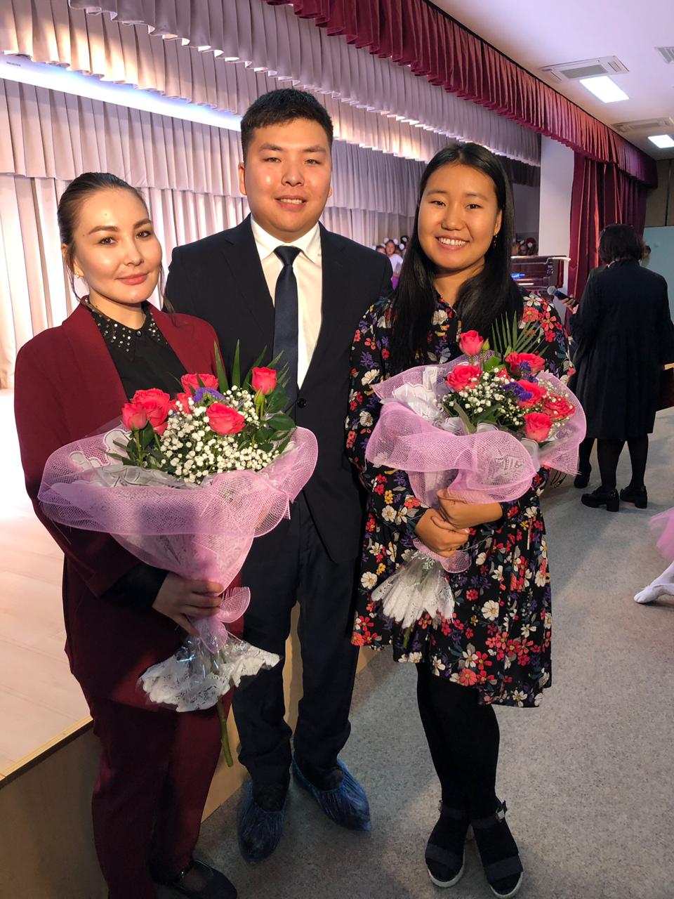 Навстречу пришли выпускники 2003, 2004 и 2008 годов. Люана Егорова – выпускница 2003 года, закончила мединститут. В данное время работает в Республиканской больнице №1. Аггел Аммосов – выпускник 2004 года, закончил физико-технический факультет СВФУ. В данное время работает научным сотрудником, аспирант. Настя Еремеева – выпускница 2008 года, закончила отделение хореографии АГиКИ. Работает хореографом в промышленном колледже.