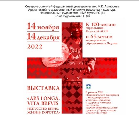 Мединститут СВФУ в этом году отмечает 65-летие медицинского образования в Якутии. В связи с этим событием в новой галерее Центра студенческих инициатив вуза с 14 ноября по 14 декабря проходит выставка «Ars longa, vita brevis/ Искусство вечно, жизнь коротка» в рамках XIII Национального конгресса с международным участием «Экология и здоровье человека на Севере». В выставке принимают участие профессиональные художники разных поколений Якутии.