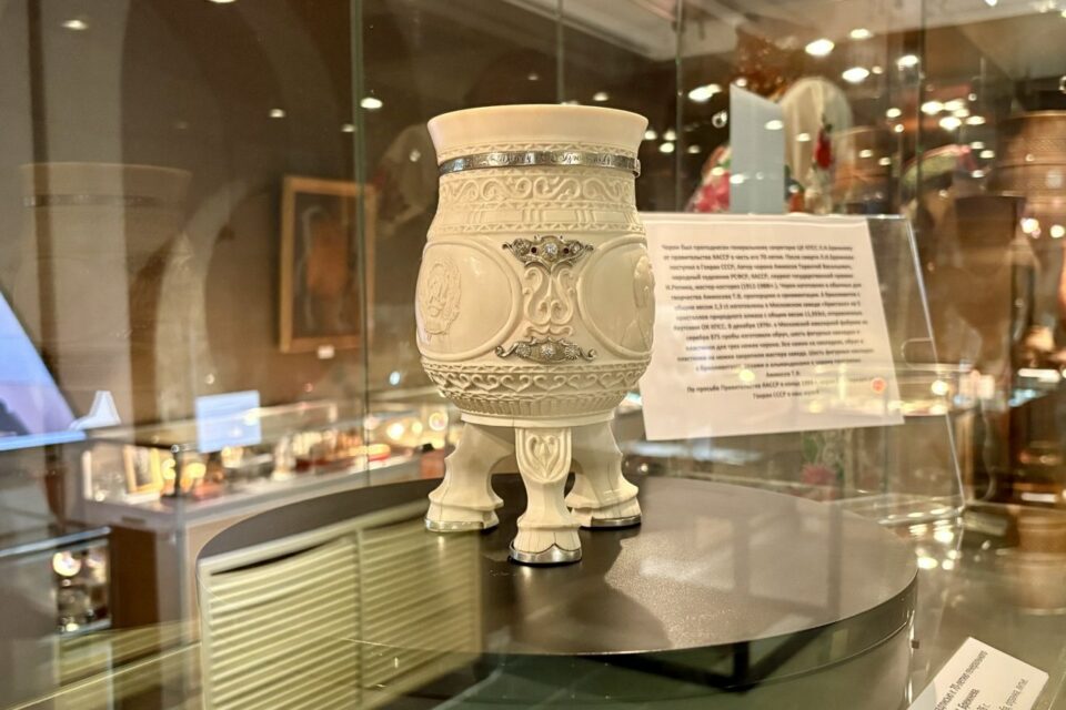 Среди наиболее интересных экспонатов – легендарный чорон с бриллиантами и драгоценными камнями, подаренный на 70-летие генеральному секретарю ЦК КПСС Леониду Брежневу. Выставленная здесь хоругвь XVII века (церковное знамя, используемое во время крестного хода) привезли с собой в Якутию русские казаки, он был обнаружен в церкви древнего города Зашиверска, исчезнувшего с лица земли еще в середине XIX века. Совершенно уникальным является сувенир из Китая в виде рисового зернышка из слоновой кости, на котором только через микроскоп можно прочитать стихотворение председателя Китайской республики Мао Цзедуна, признанного одним из лучших поэтов XX века.