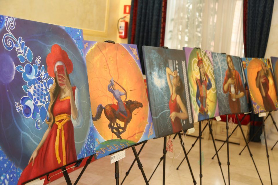Выставка состоит из трех оригинальных коллекций картин. Первая представляет собой масштабный проект из 33 картин, выполненный на стыке дизайна, графики и академической масляной живописи на основе этнографического и филологического научных материалов. Картины данной коллекции отражают пословицы и поговорки народов России.