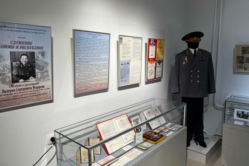 В музее имени Ярославского в Якутске открыли выставку, посвященную 80-летию генерал-лейтенанта милиции Валерия Федорова. В торжественном мероприятии приняли участие действующие сотрудники, ветераны органов внутренних дел, научные сотрудники музея и родные Федорова.