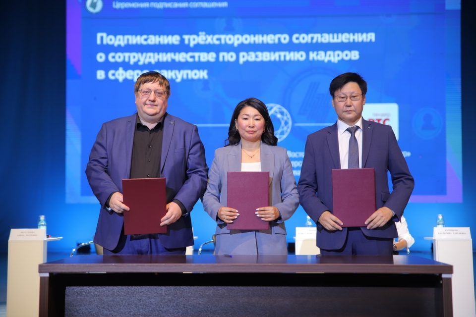 В ходе конференции также был сделан большой шаг и в вопросе подготовки квалифицированных кадров — подписано трёхстороннего соглашение между Центром закупок Якутии, Северо-Восточным федеральным университетом и Дальневосточным филиалом ООО «РТС-тендер». В рамках соглашения планируется реализация образовательного проекта по подготовке квалифицированных специалистов по закупкам из числа студентов. Они смогут бесплатно получить дополнительное образование и освоят востребованную специальность.