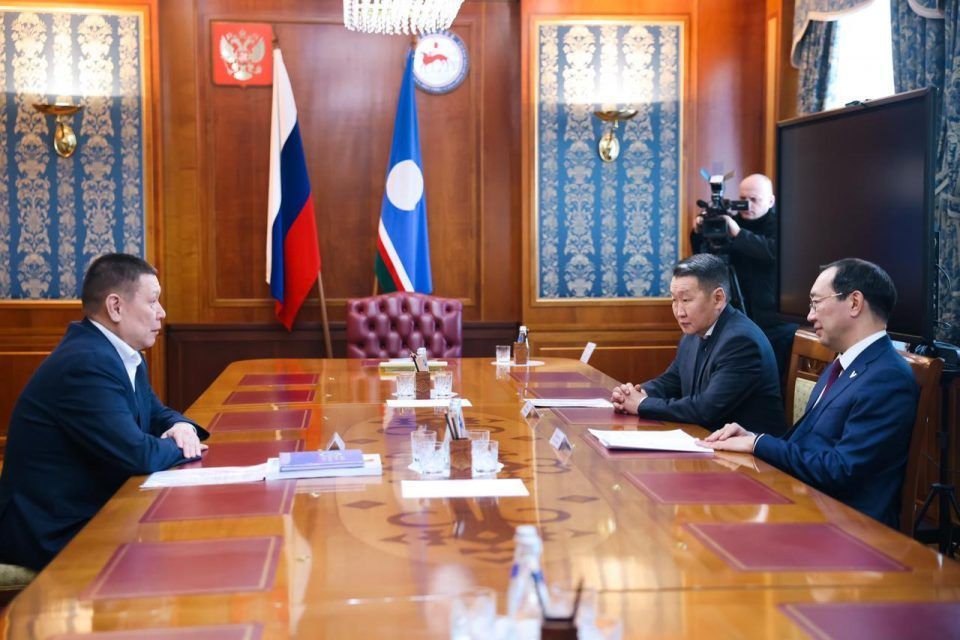 Глава Якутии Айсен Николаев и сенатор, президент Ассоциации коренных малочисленных народов Севера, Сибири и Дальнего Востока РФ Григорий Ледков обсудили организацию совместной площадки на выставке-форуме «Россия».