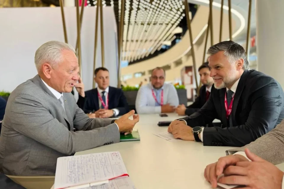 Председатель правительства Якутии Кирилл Бычков провёл рабочую встречу с председателем Промышленного кластера Республики Татарстан Сергеем Майоровым в рамках Международной промышленной выставки «ИННОПРОМ-2025», проходящей в Екатеринбурге.