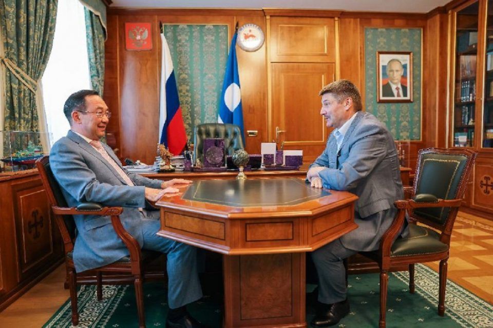 Айсен Николаев и Василий Шимохин обсудили на встрече задачи на летний период, объемы строительства и капитального ремонта на объектах компании.
