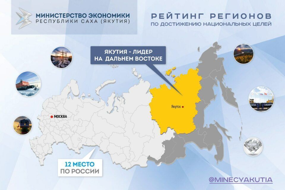 Якутия стала лидером среди дальневосточных регионов и заняла 12-е место по России в рейтинге регионов по достижению целевых показателей национальных идей. Такую оценку дали эксперты международного центра социально-экономических исследований «Леонтьевский центр».