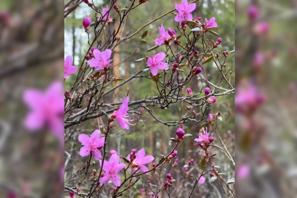 В Амгинском районе запечатлели цветение рододендрона даурского, который в народе называют якутской сакурой. Видео кустарника с ярко-розовыми цветами поделилась Катерина Новикова в телеграм-канале районной газеты «Амма оло5о».