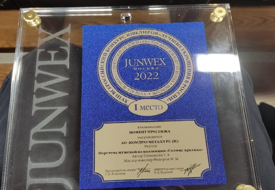 На конкурсе ювелиров России JUNWEX-2022 якутская компания «Комдрагметалл» одержала победу в номинации «Момент престижа». Награду получил мужской перстень из коллекции «Солнце Арктики», передает ЯСИА со ссылкой на пресс-службу Министерства промышленности и геологии республики.