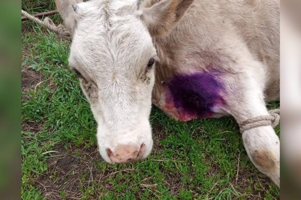 После обработки раны и наложения швов состояние шестимесячного теленка улучшилось.