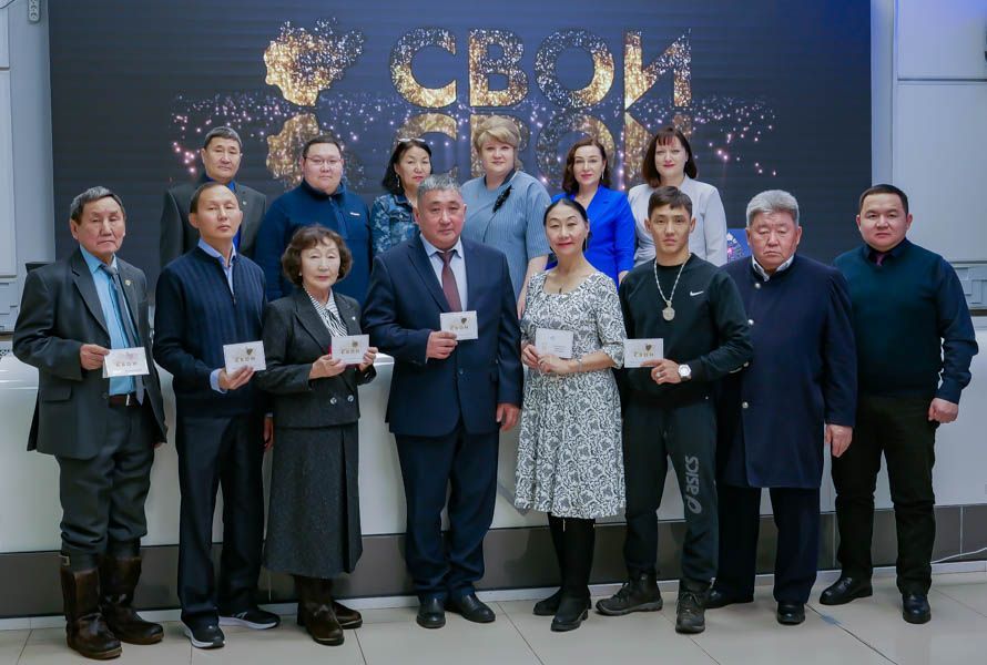 Всем героям вручили памятные знаки проекта «СВОИ». Знак представляет картографическое очертание Якутии и выполнен из желтого металла с эффектом полировки.