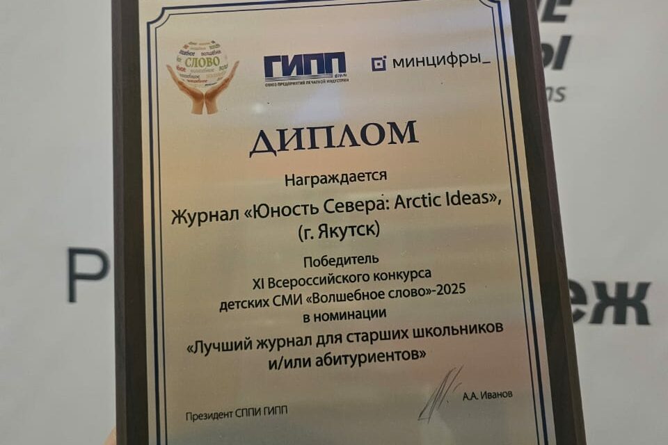 С 30 сентября по 3 октября в городе Тарусе проходит XI Всероссийский фестиваль детских СМИ «Волшебное слово». На нем подведены итоги конкурса, на который поступило 94 заявки от изданий из регионов России и Беларуси. Победу в номинации «Лучший журнал для подростков и/или абитуриентов» одержало издание из Якутии «Юность Севера: Arctic ideas».
