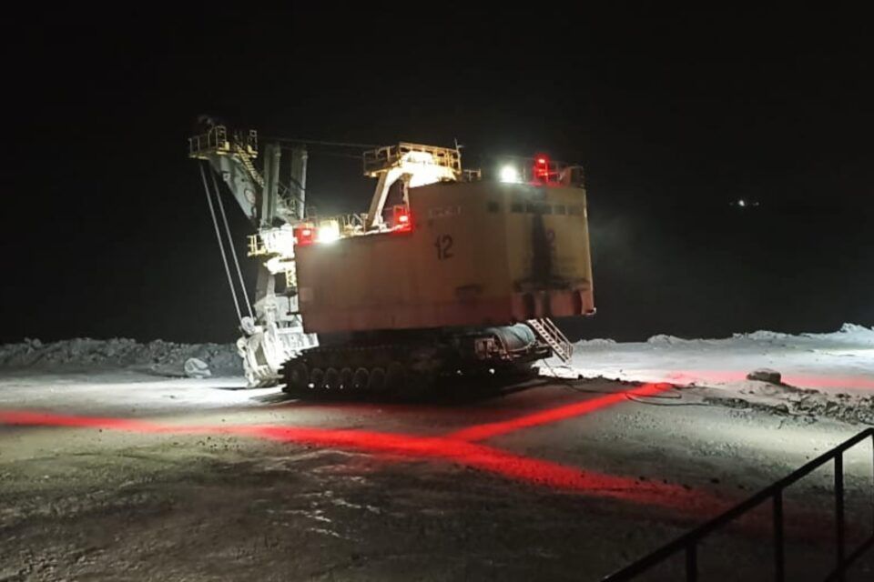 «Якутуголь» установил на экскаваторы прожекторы «Линия жизни» для обозначения безопасной зоны при маневрировании во время горных работ.