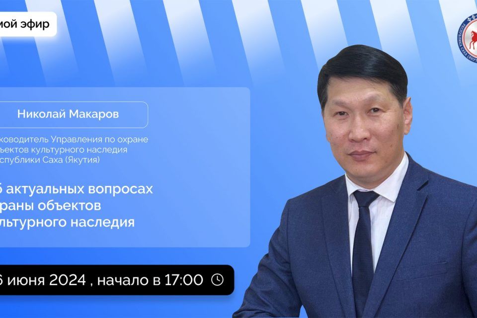 В среду, 26 июня, руководитель Управления по охране объектов культурного наследия Якутии Николай Макаров проведет прямой эфир в соцсетях. Он расскажет якутянам о деятельности ведомства и ответит на поступившие вопросы.