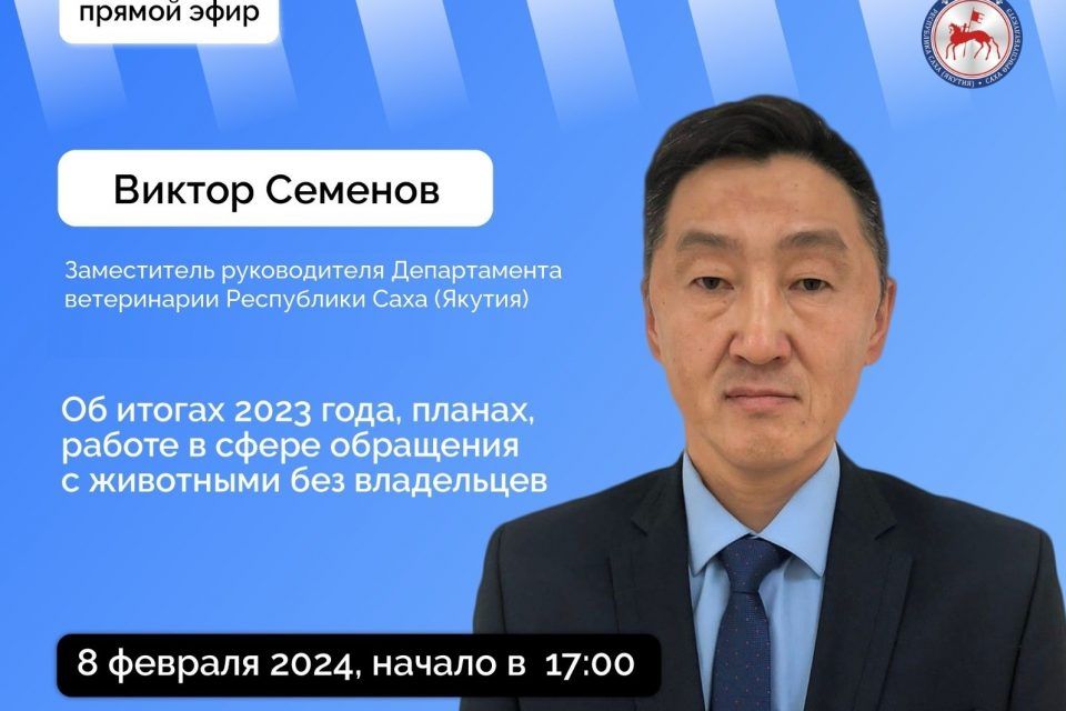 В четверг, 8 февраля, якутянам в прямом эфире соцсетей расскажут о работе в сфере обращения с бездомными животными. Эфир проведет заместитель руководителя Департамента ветеринарии республики Виктор Семенов.