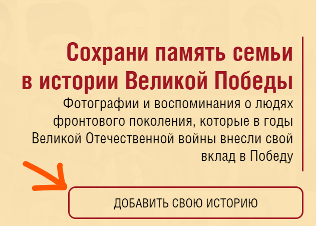 Подробная инструкция по внесению информации в исторический депозитарий «Лица Победы»: Заходите на сайт Всенародный исторический депозитарий или ЛицаПобеды.рф, нажимаете кнопку «Добавить историю».