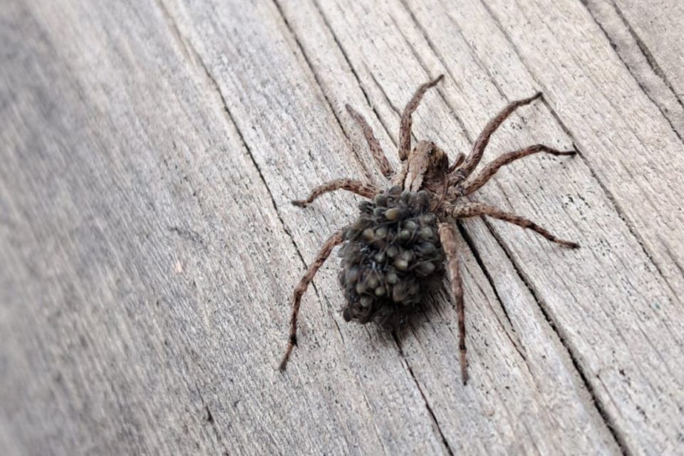 «На фото самка паука-волка с паучатами на спине, которые вышли из кокона. Для них характерен такой способ размножения. Количество потомства у пауков зависит от вида: пауки-волки могут откладывать до 50 яиц. У некоторых видов потомство могут носить на спине самцы. Возможно, паучки съедят мать или отца, когда подрастут в течении этого лета», — прокомментировал биолог.