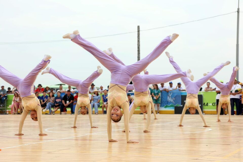 На VIII Спортивных играх народов Якутии в Борогонцах завершились соревнования по фитнес аэробике. Зрелищные программы представили 12 команд по восемь девушек. Как призналась приглашенная из Красноярска судья Юлия Котельникова, определить лучшую команду было крайне сложно.