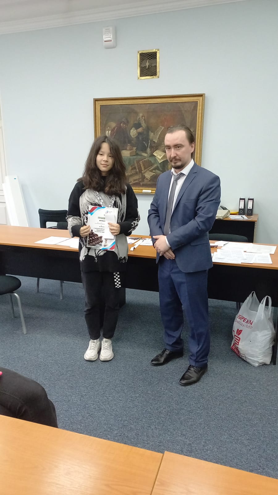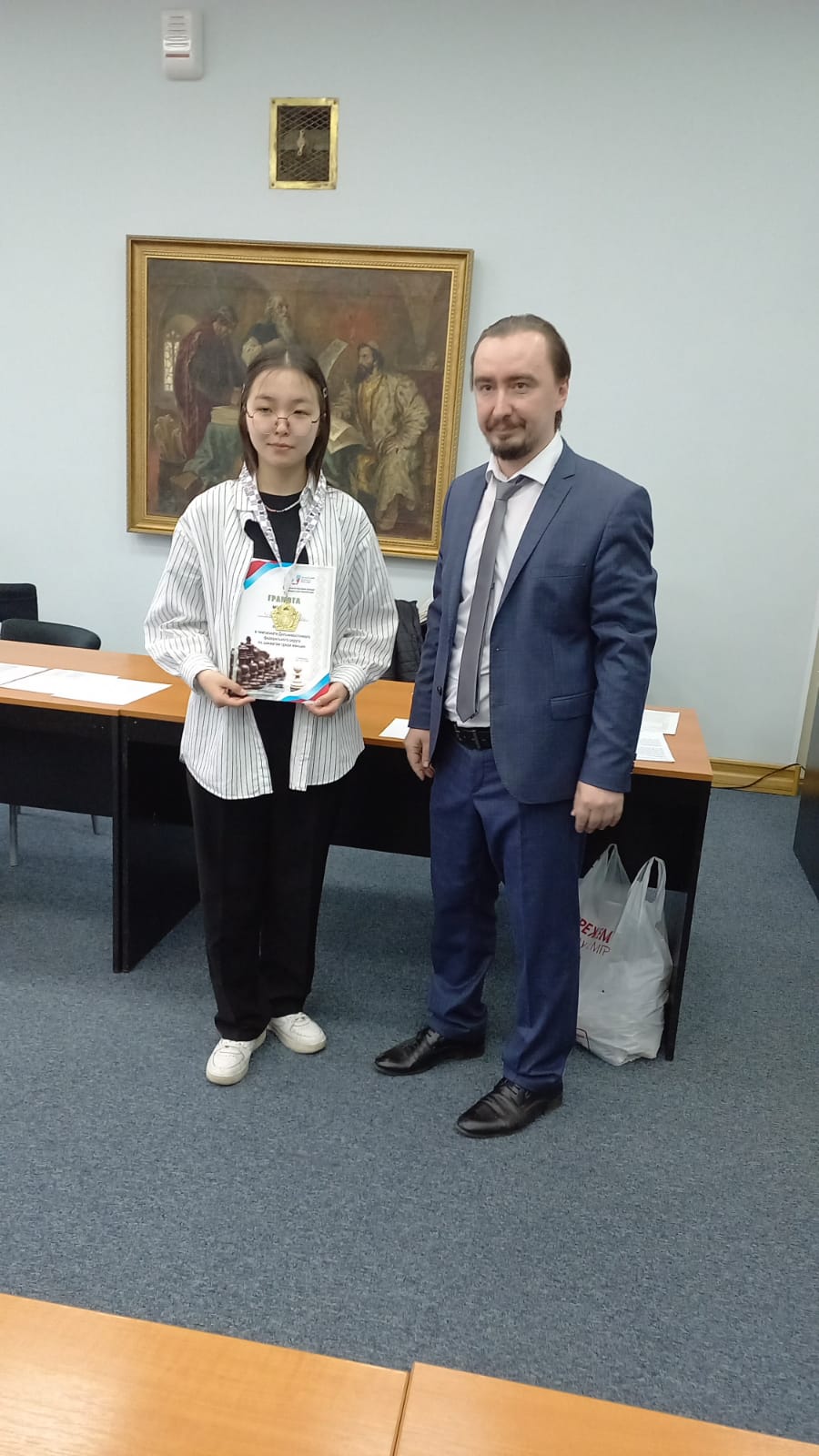В чемпионате ДВФО по быстрым шахматам среди женщин первое место заняла четырнадцатилетняя Арина Васильева – г. Якутск (учащаяся ЯГНГ), третье место Полина Пак – г. Якутск (учащаяся Саха-Корейской СОШ) – тренером девушек является старший тренер республики Ганжуров Р.В.