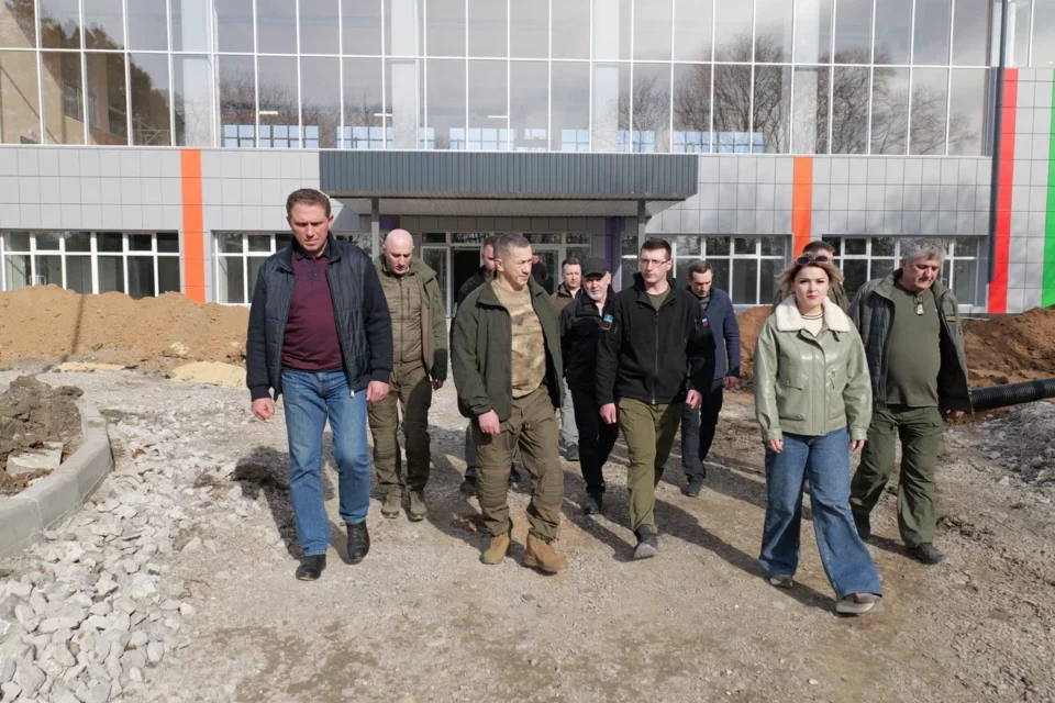 В Дебальцеве Юрий Трутнев ознакомился с проведением капитального ремонта разрушенных помещений здания бассейна ФСК «Локомотив», поврежденного в результате обстрела ВСУ в феврале 2023 года. Завершен демонтаж левой разрушенной части здания и вспомогательных помещений, восстановлены внешняя несущая и внутренние стены, парапеты. Уложены плиты перекрытия и карнизные плиты. Завершено утепление и устройство кровли. Заменена электропроводка, закончено обустройство основания для входной группы. Смонтированы вентилируемый фасад, витражи, выполнен монтаж инженерных систем (вентиляции, водоснабжения, электроснабжения, отопления). Работы по восстановлению бассейна находятся на финальной стадии. Установлена новая мембрана чаши бассейна, проводится технический набор воды. Строители завершают работы по устройству фасада и внутренние отделочные работы.