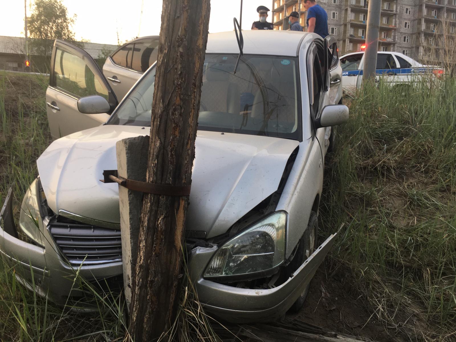 По предварительным данным установлено, что водитель автомобиля «Тойота Витц» проехал на запрещающий сигнал светофора и совершил столкновение с автомашиной «Тойота Премио», которая от удара съехала с дорожного полотна и врезалась в дерево.