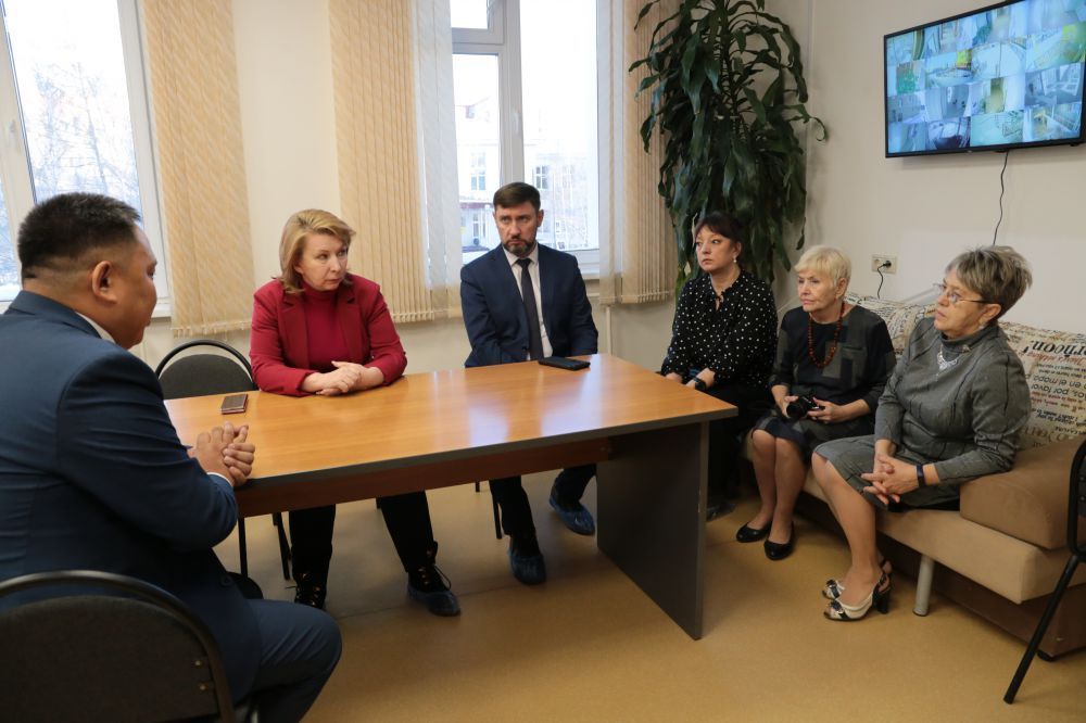 15 ноября до обеда Ольга Балабкина побывала в ГКУ РС(Я) «Мирнинский социально-реабилитационный центр «Харысхал», где ей показали внутренние помещения – кабинеты, спортзал, спальни, столовую и др.