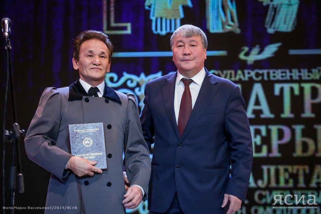 «Действительно, как прекрасный спектакль, Год театра пролетел, наверное, быстрее как любой другой год. Начался он с аплодисментов, которые прозвучали на Приморской сцене Мариинского театра, когда наш прекраснейший Театр Олонхо открыл своим обрядом Год театра в стране, после которого последовала череда фестивалей. Приняв фестиваль Чукотского театра, мы передали его Забайкальскому театру. Но каждый из нас передавал творчество, мастерство, таланты, которые есть в нашей республике, и мы брали то, что есть у наших соседей. В этот год наши театры реально получили определенный подъем – каждый в своем качестве и своей роли», — сообщила заместитель председателя правительства Якутии Ольга Балабкина, подводя итоги уходящего года. Она вручила двум театральным деятелям республики – артистке Саха театра Зое Багынановой и художественному руководителю Нюрбинского драмтеатра Юрию Макарову признание от лица министерства культуры РФ.
