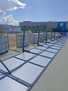 Днем 9 июля 2024 года элемент, состоящий из композитного материала и металлических профилей конструкции временного ограждения объекта, не закрепленный и не усиленный должным образом, под воздействием ветровой нагрузки опрокинулся на проходящую пожилую женщину, которая получила переломы и была доставлена в медицинское учреждение.