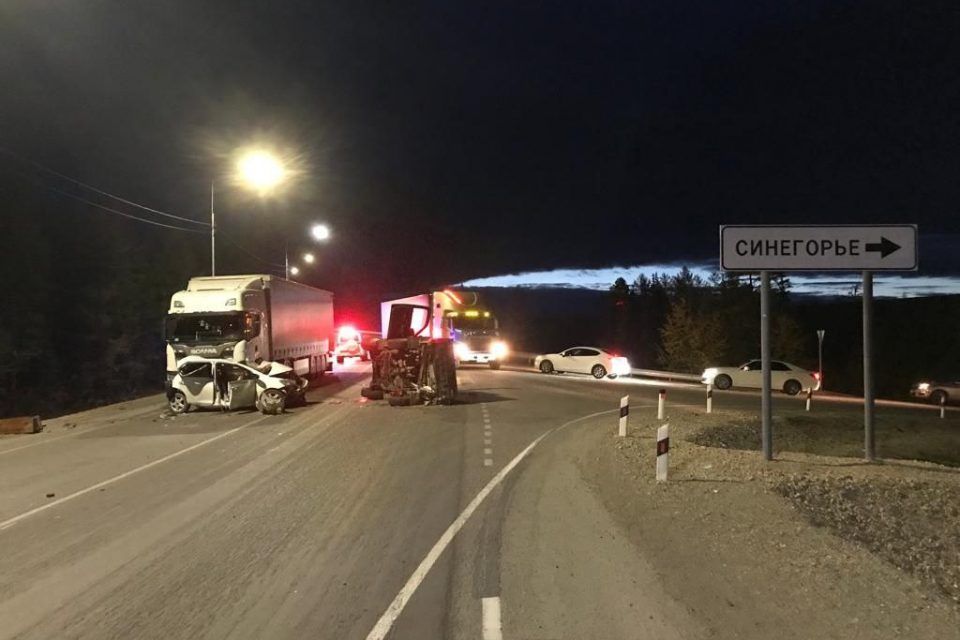 Водитель 1984 года рождения, направляясь на грузовом тягаче Scania со стороны Алдана в Якутск, превысил скорость. В результате он столкнулся с впереди едущим автомобилем Toyota Belta, который по инерции въехал в Nissan Datsun. Последний же опрокинулся на правый бок.