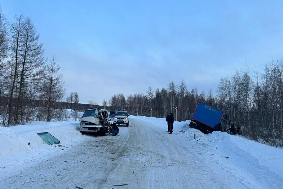 Водитель автомобиля Toyota Hiace Regius не справился с управлением, выехал на встречную полосу, где столкнулся с автомашиной «Урал». В результате в Амгинскую больницу с множественными травмами госпитализированы пассажиры микроавтобуса – женщина 1983 года рождения, она не была пристегнута ремнем безопасности, и шестилетний мальчик, был пристегнут в автокресле.