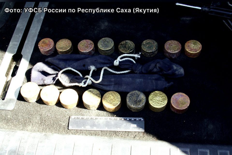Как сообщает пресс-служба УФСБ России по Якутии, 16 золотых слитков цилиндрической формы обнаружили в составной части автомобиля. Задержанный понимал противоправность своих действий, поэтому таким образом попытался спрятать находку.