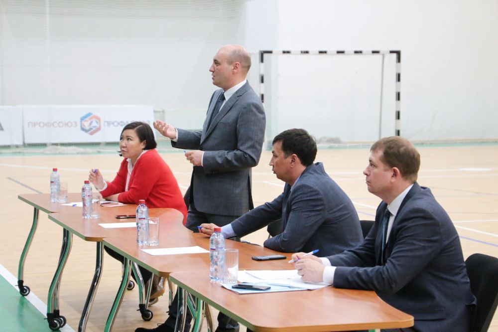 Александр Басыров приехал в СК «Кимберлит» где состоялась беседа с работниками КСК АК «АЛРОСА». Большая часть вопросов, заданных гостям касалась благоустройства города, причем со спортивным уклоном.