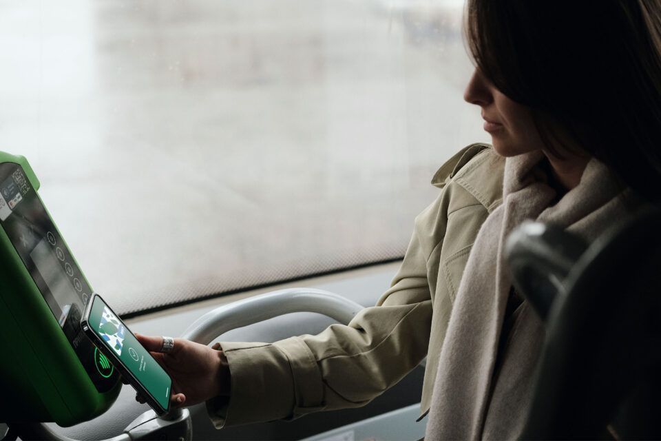 Для оплаты смартфоном нужно скачать на смартфон приложение Mir Pay или Samsung Pay, пройти регистрацию и загрузить свою карту «Мир». В автобусе же достаточно приложить смартфон к валидатору, а скидка применится автоматически, и сумма поездки спишется на восемь рублей меньше.